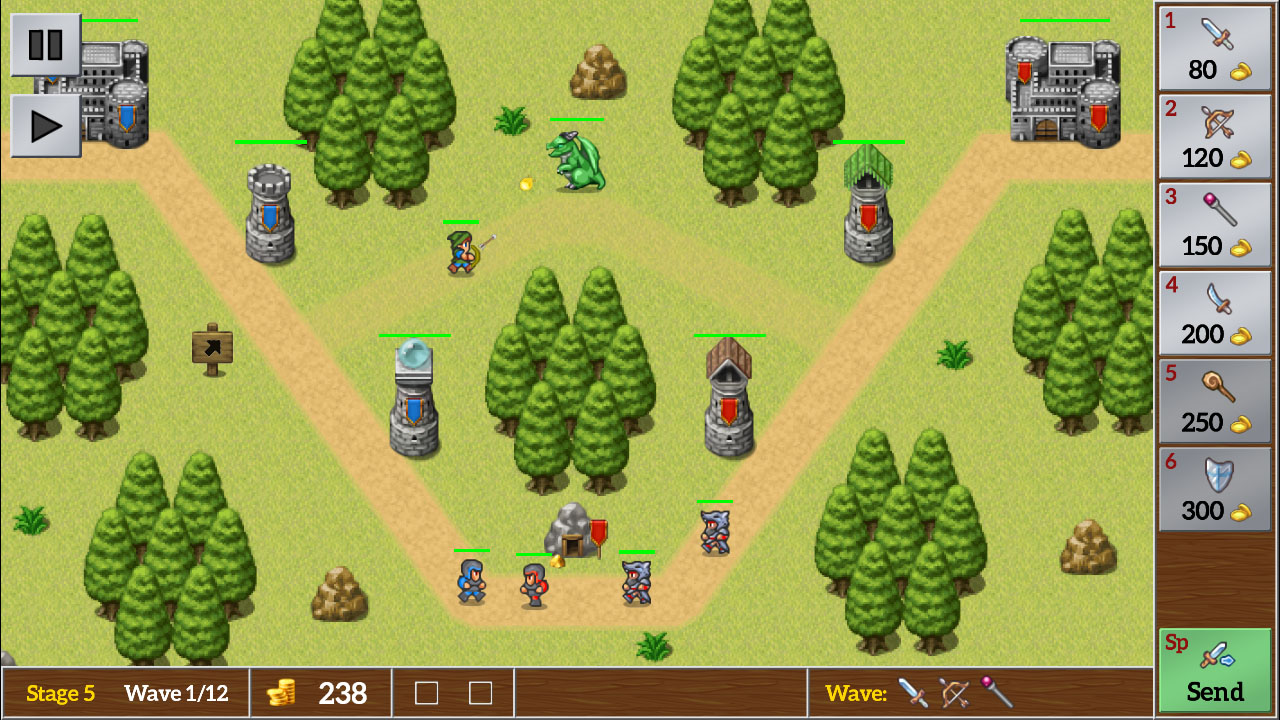 The reign needs your help to win the battle against the enemy army. You should organize the troops to attack the enemy structures and at the same time, build and upgrade your towers to defend.